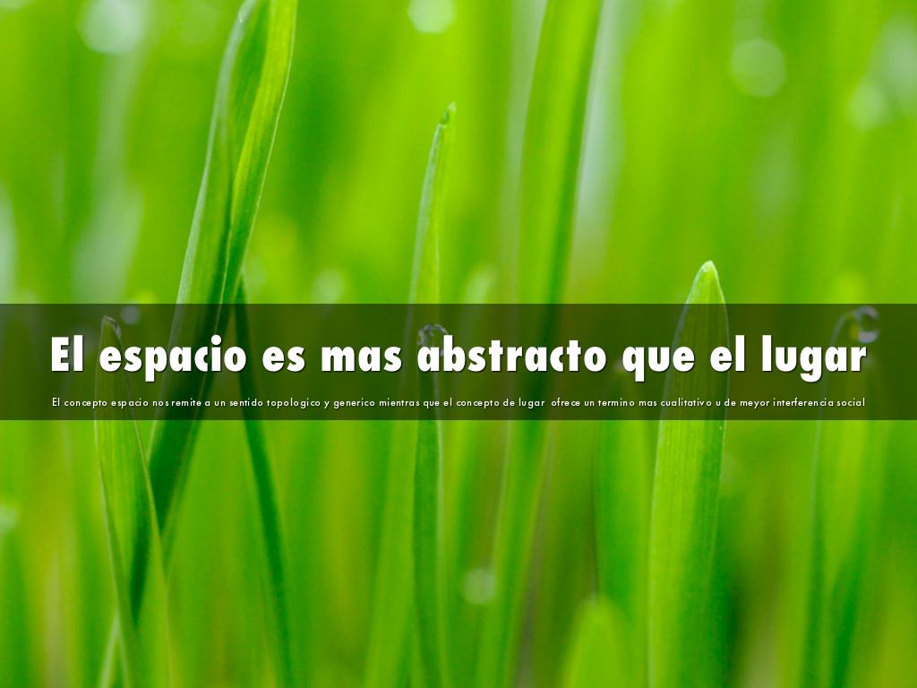 El concepto espacio nos remite a un sentido topologico y generico mientras que el concepto de lugar ofrece un termino mas cualitativo u de meyor interferencia social