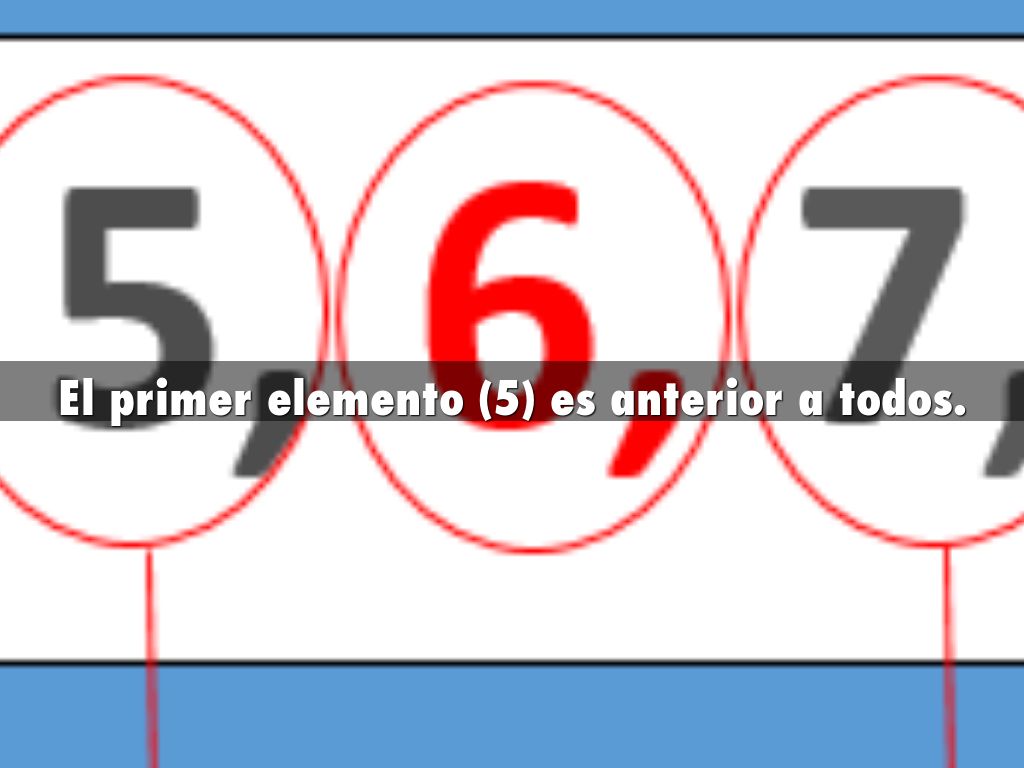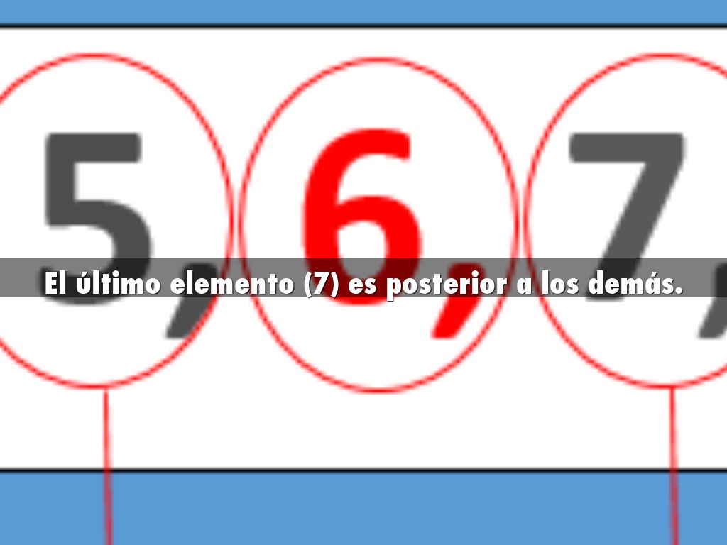 1, 2, 3, 4, 5: anteriores al 6. El 5 es inmediato anterior (6). El 7 inmediato posterior. El 8 posterior al 6