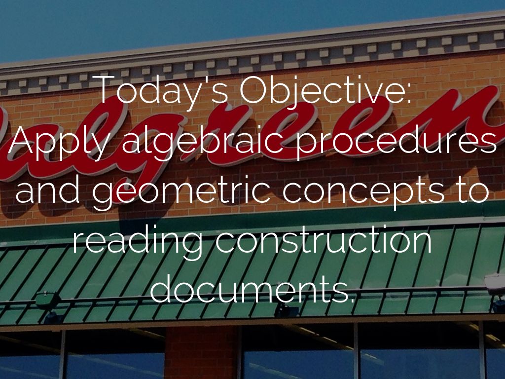 Apply algebraic procedures and geometric concepts to reading construction documents.