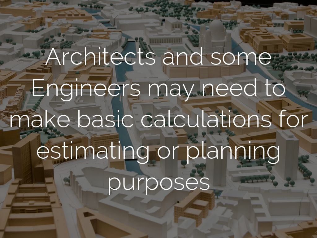 Architects and some Engineers may need to make basic calculations for estimating or planning purposes
