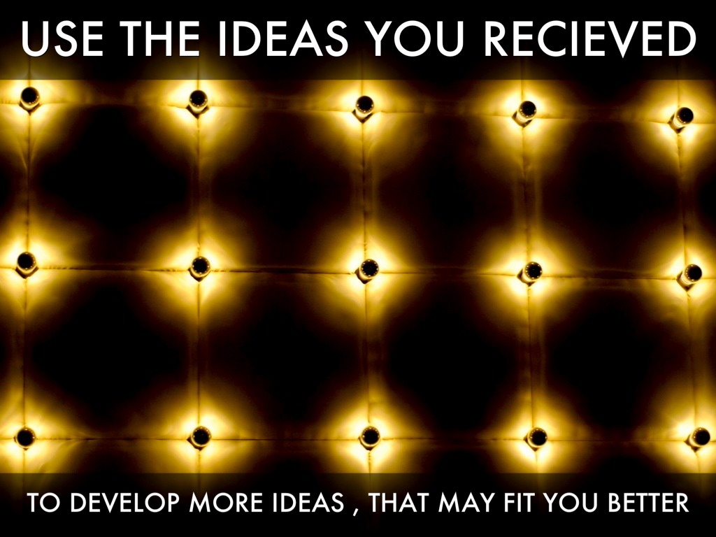 TO DEVELOP MORE IDEAS , THAT MAY FIT YOU BETTER