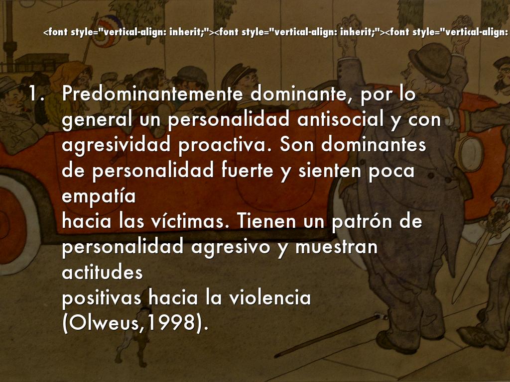 agresividad proactiva. Son dominantes de personalidad fuerte y sienten poca empatía