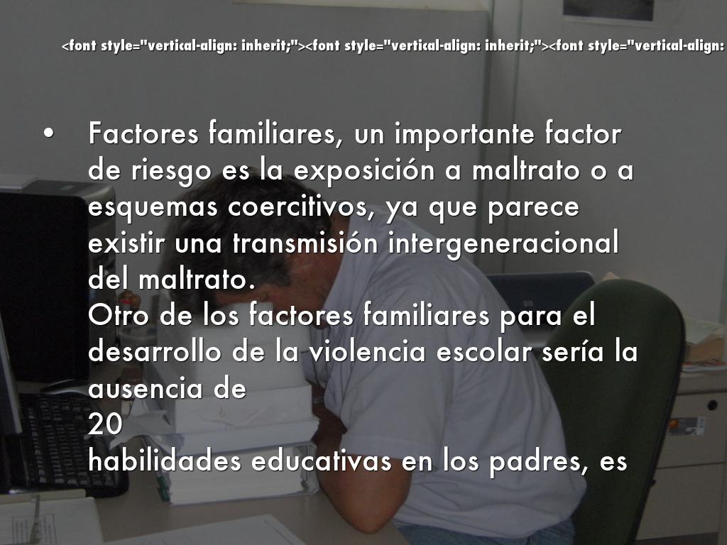 Otro de los factores familiares para el desarrollo de la violencia escolar sería la ausencia de
