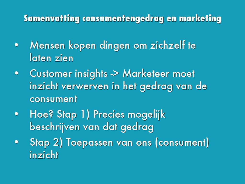 Customer insights -> Marketeer moet inzicht verwerven in het gedrag van de consument