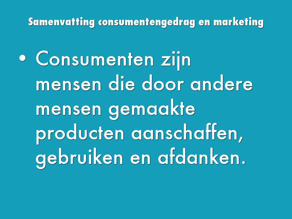 Consumenten zijn mensen die door andere mensen gemaakte producten aanschaffen, gebruiken en afdanken.