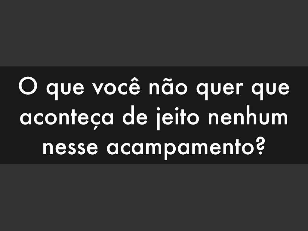 O que você não quer que aconteça de jeito nenhum nesse acampamento?