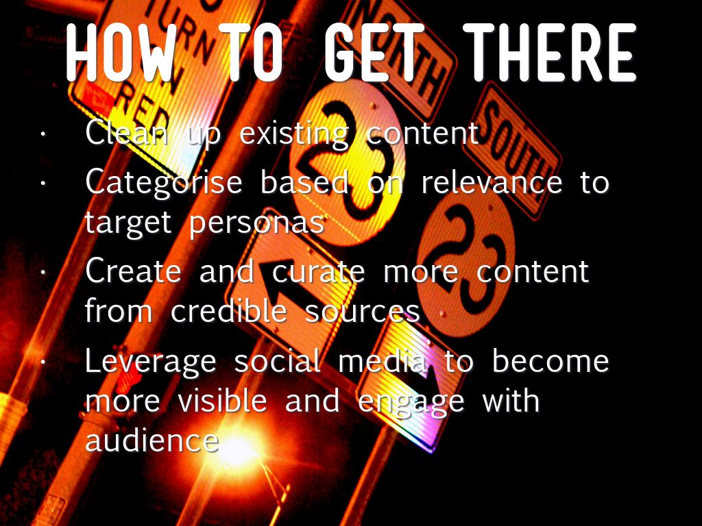 * Existing content has been categorised based on relevance to target personas. New content created and curated will be categorised and tagged appropriately.