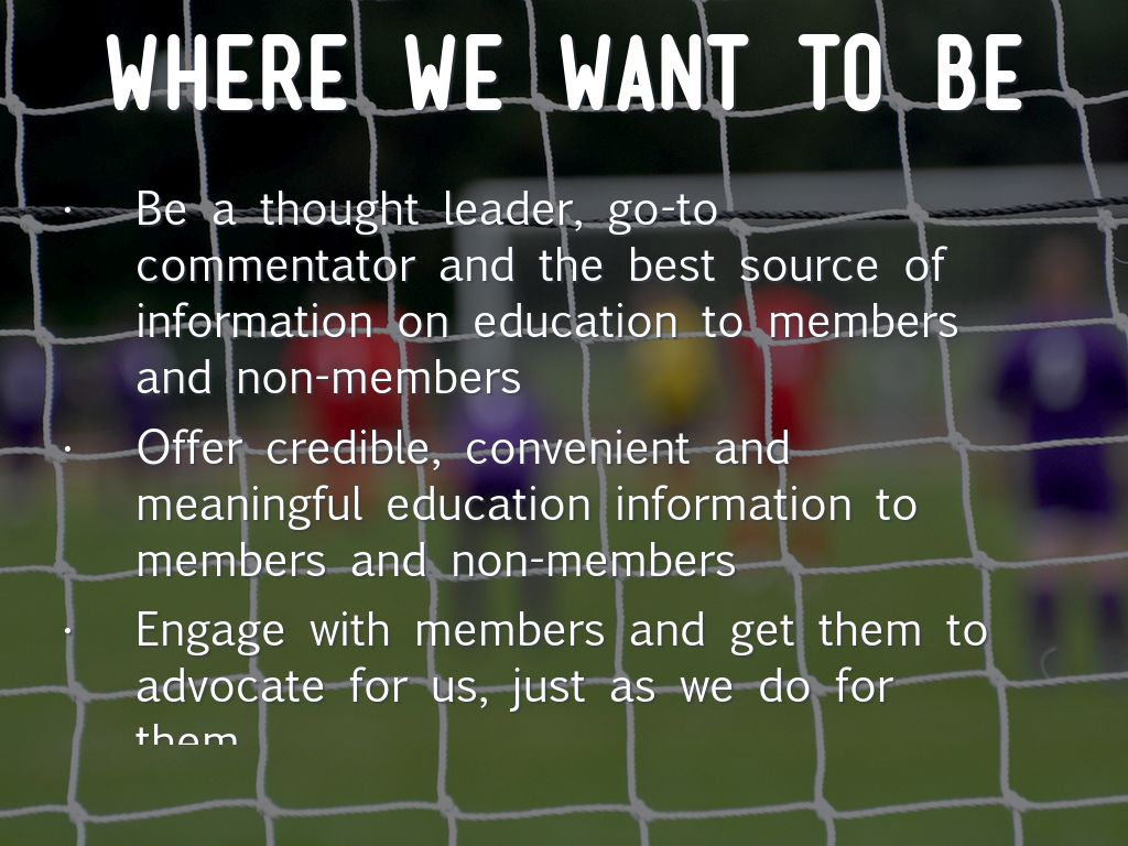 * Be more active and lively on social media, reduce response time to member's comments, be accurate and on same page while responding to member queries. This will mean not shying away from negative comments and posts, but to engage with critics and steer them to see our perspective
