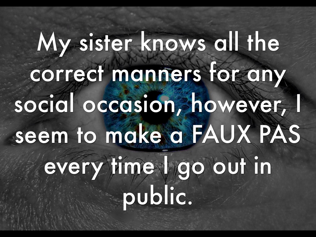 My sister knows all the correct manners for any social occasion, however, I seem to make a FAUX PAS every time I go out in public.