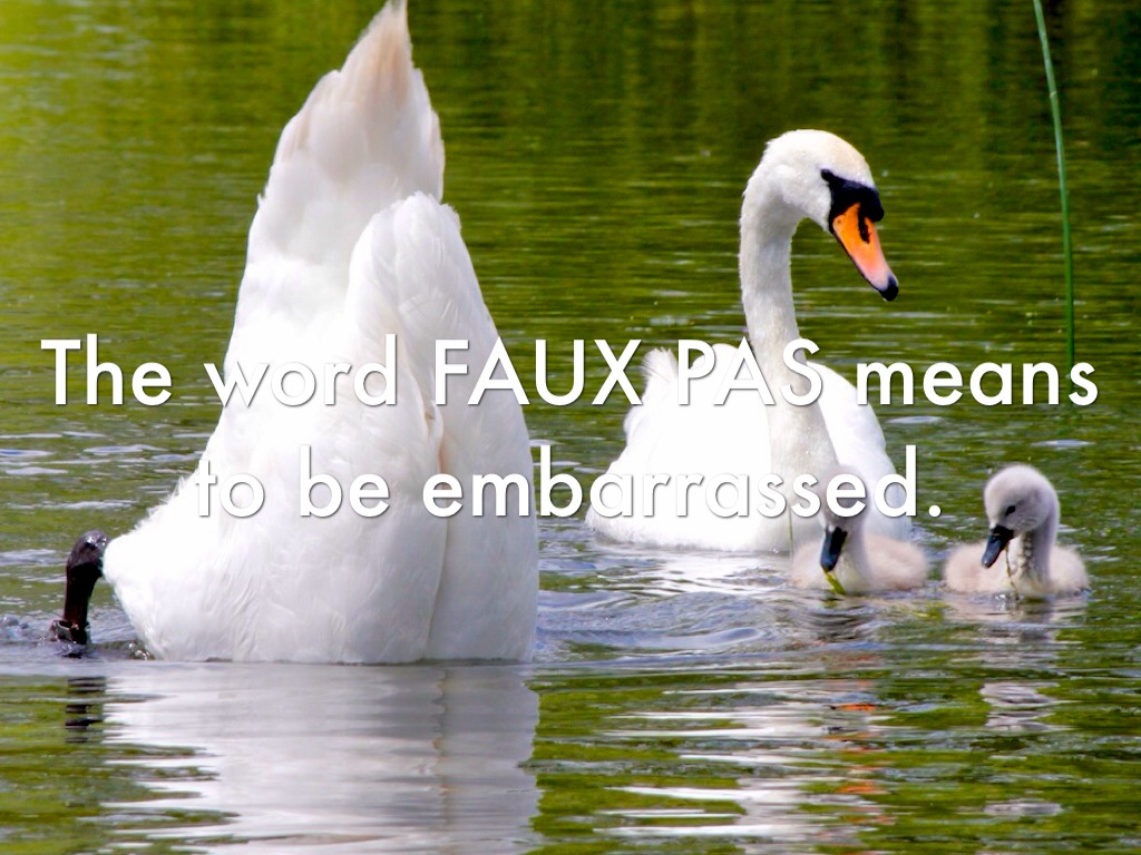 The word FAUX PAS means to be embarrassed.
