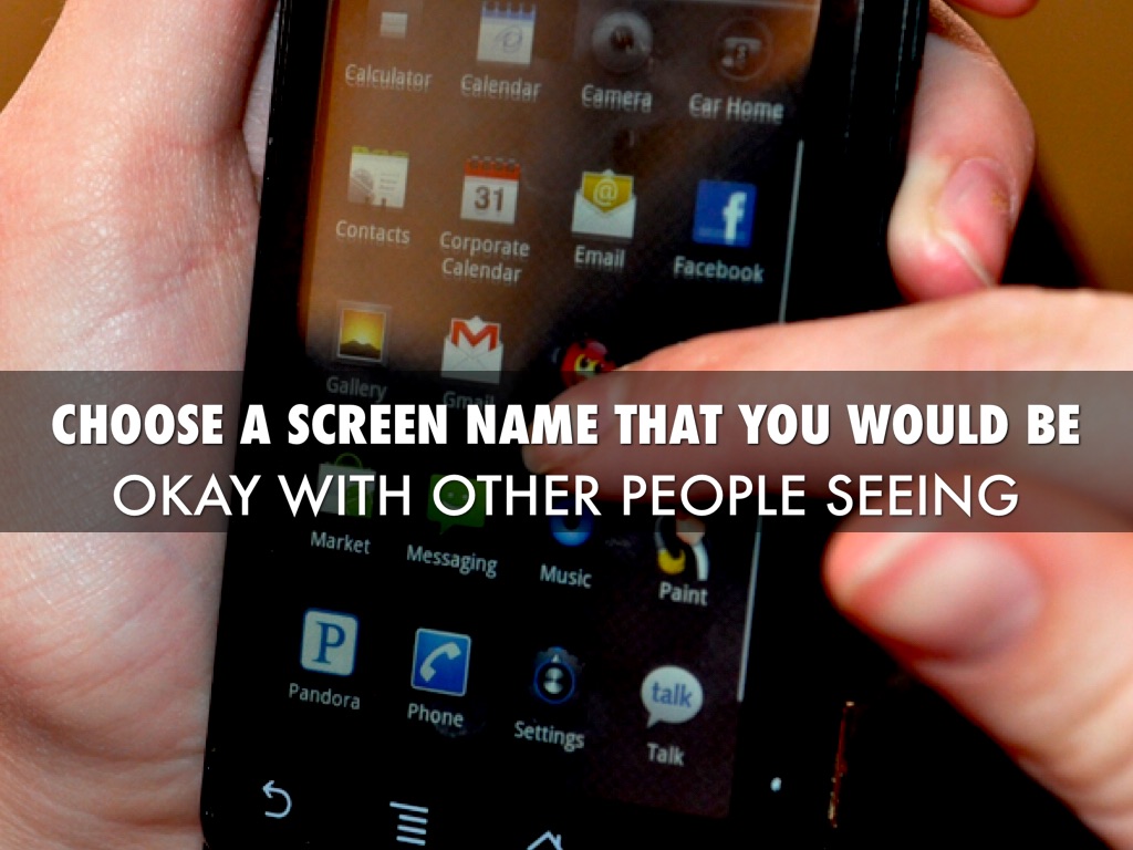 CHOOSE A SCREEN NAME THAT YOU WOULD BE