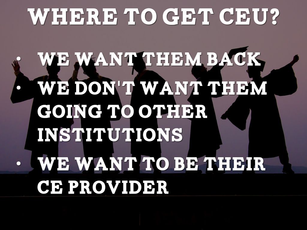 Our former students access many providers for "CEUs" spending their dollars elsewhere.