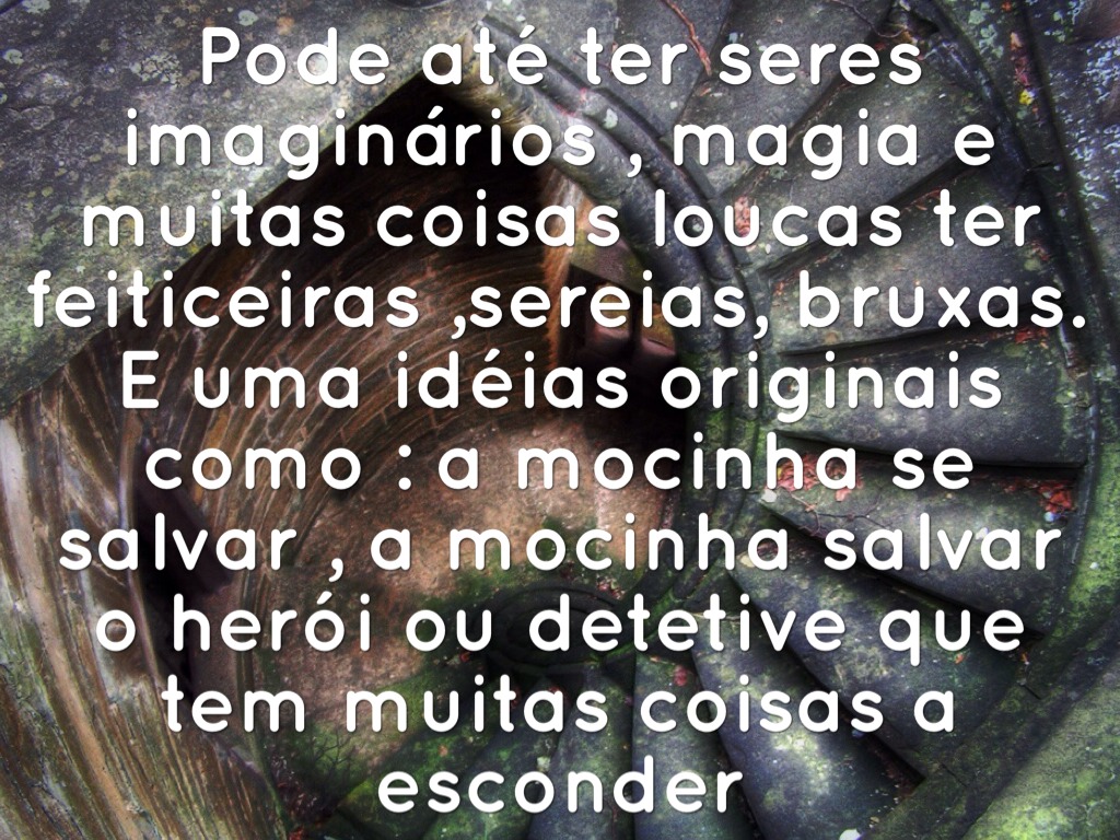Pode até ter seres imaginários , magia e muitas coisas loucas ter feiticeiras ,sereias, bruxas. E uma idéias originais como : a mocinha se salvar , a mocinha salvar o herói ou detetive que tem muitas coisas a esconder