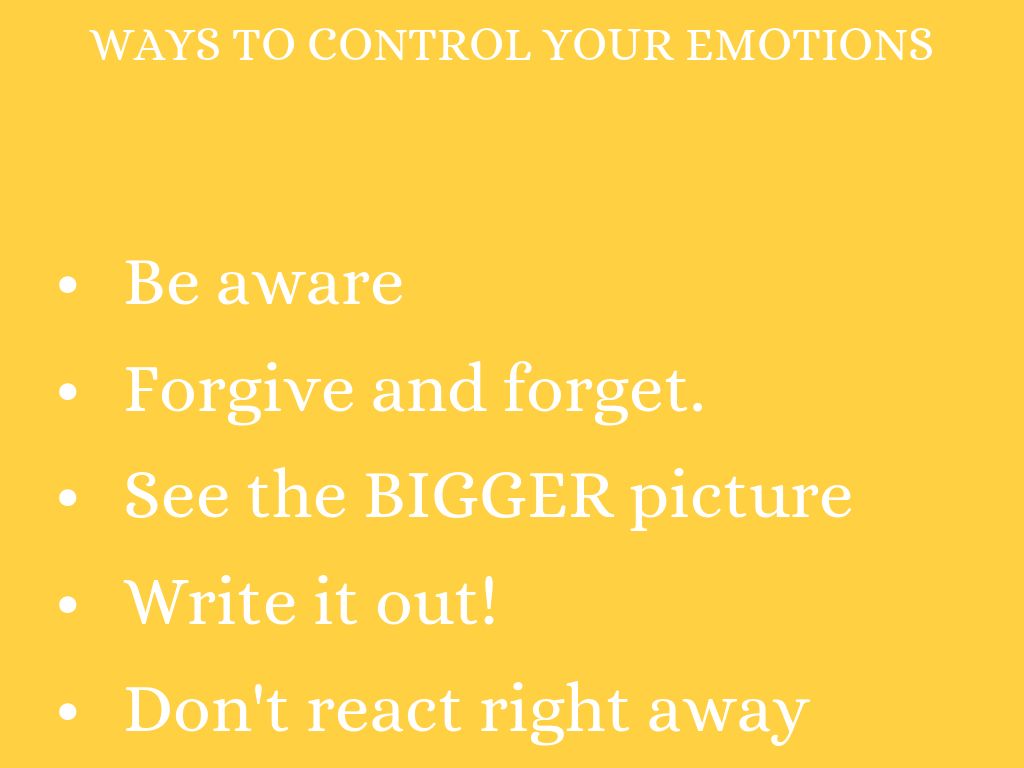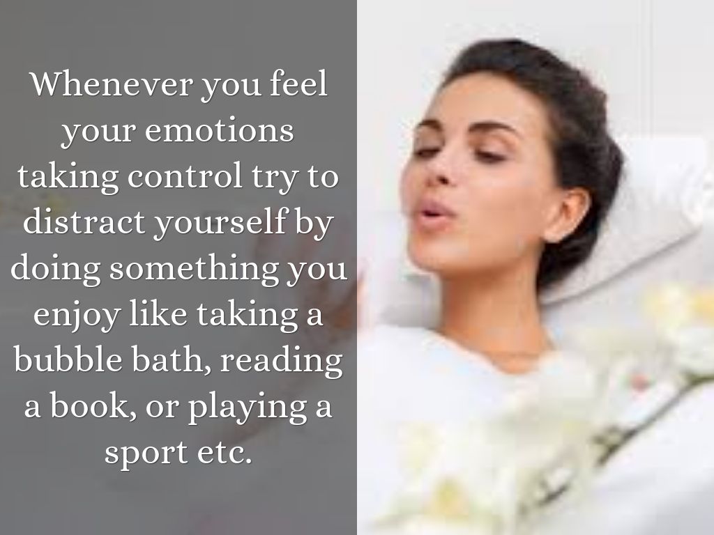 Whenever you feel your emotions taking control try to distract yourself by doing something you enjoy like taking a bubble bath, reading a book, or playing a sport etc.