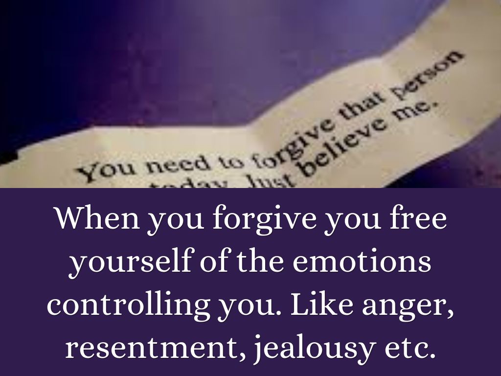 When you forgive you free yourself of the emotions controlling you. Like anger, resentment, jealousy etc.