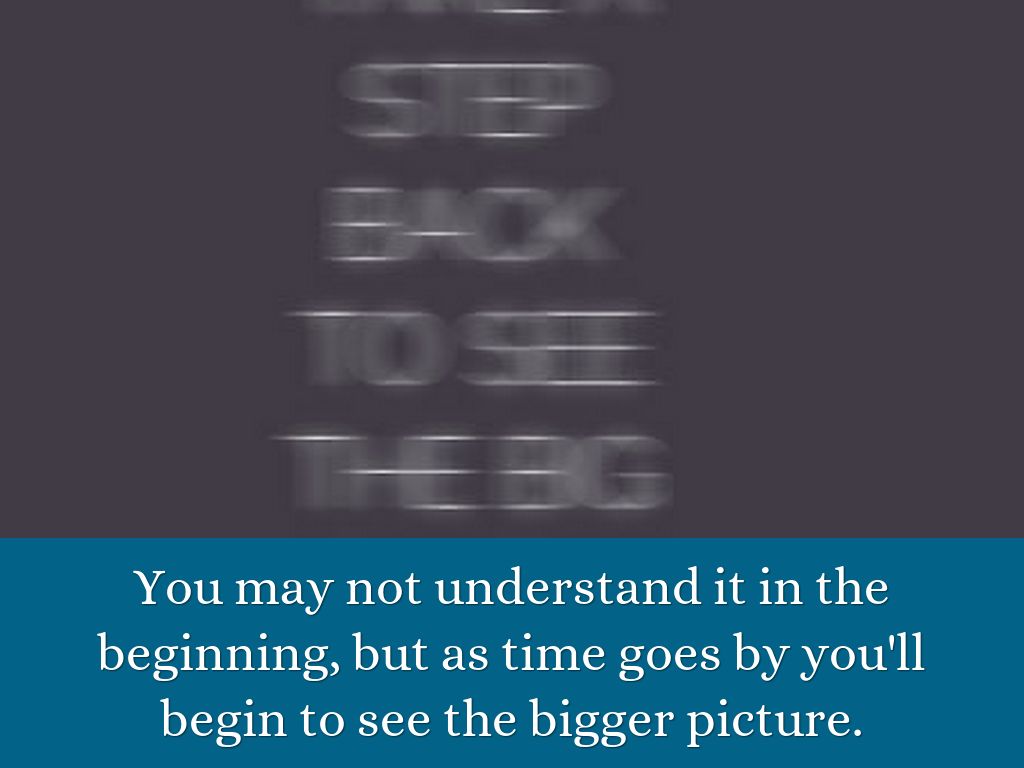 You may not understand it in the beginning, but as time goes by you'll begin to see the bigger picture.