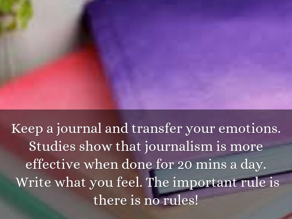 Keep a journal and transfer your emotions. Studies show that journalism is more effective when done for 20 mins a day. Write what you feel. The important rule is there is no rules!