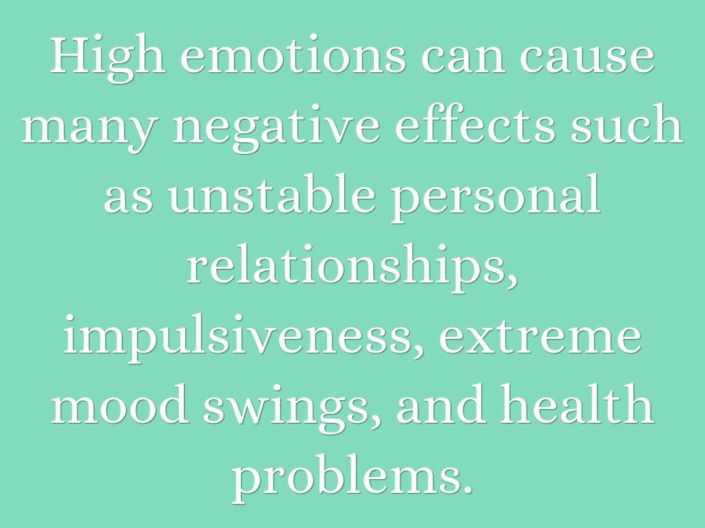 High emotions can cause many negative effects such as unstable personal relationships, impulsiveness, extreme mood swings, and health problems.