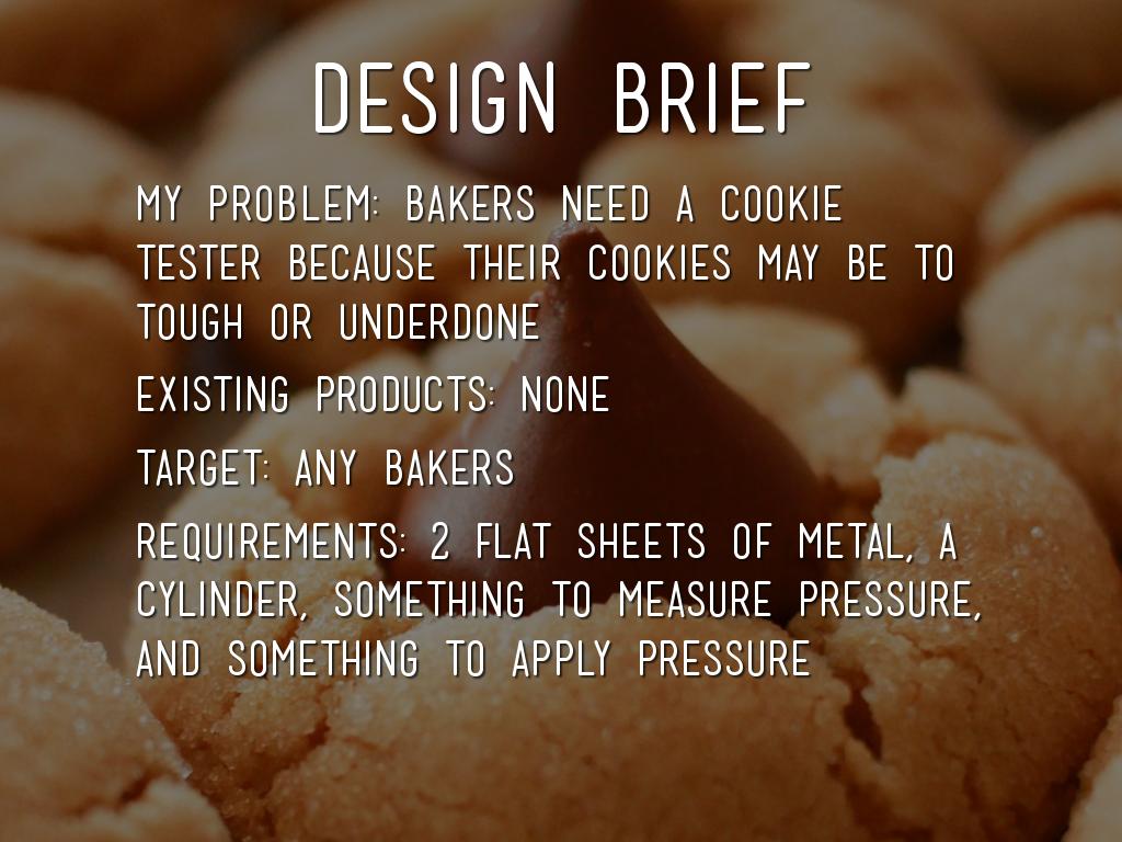 MY PROBLEM: Bakers need a cookie tester because their cookies may be to tough or underdone