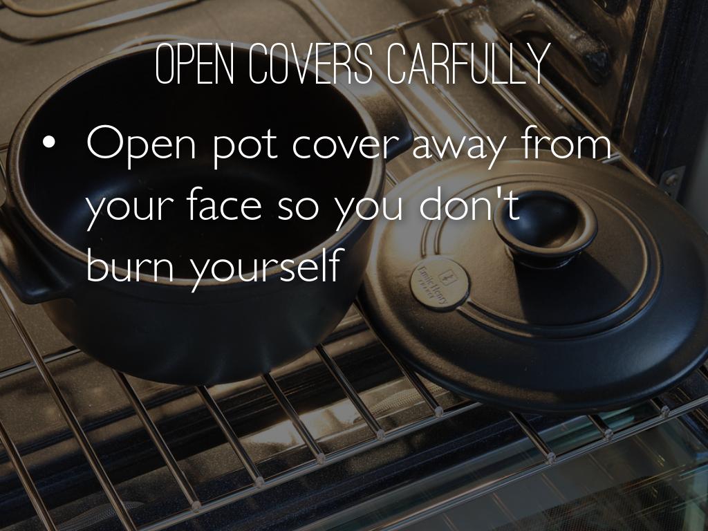 • Stay to the side of the oven when you open it so you don't burn yourself