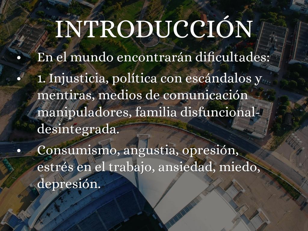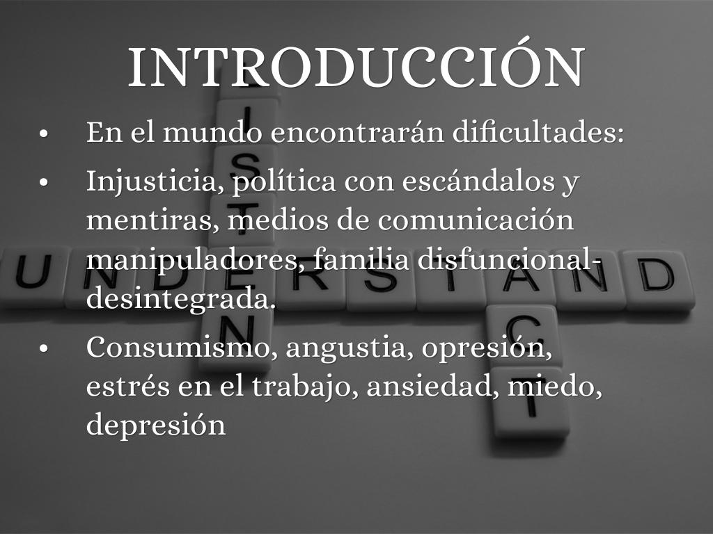 • 1. Injusticia, política con escándalos y mentiras, medios de comunicación manipuladores, familia disfuncional-desintegrada.