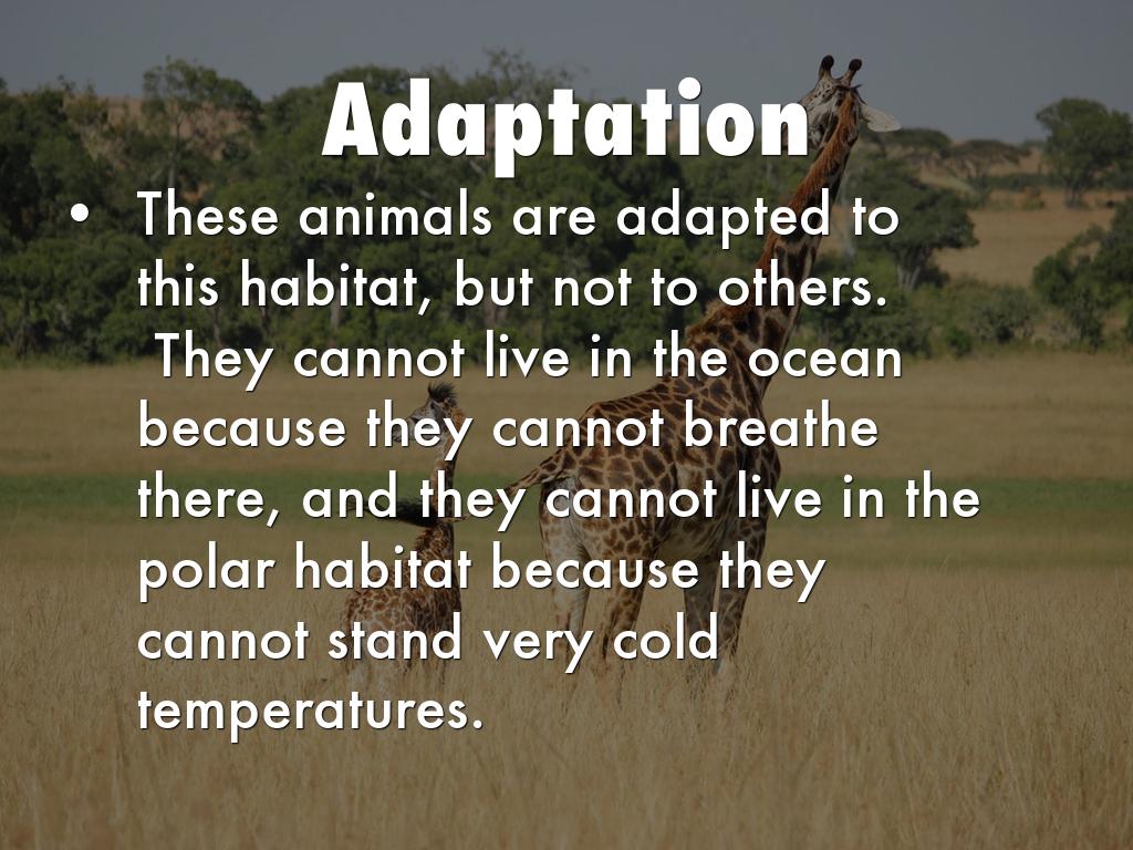 These animals are adapted to this habitat, but not to others. They cannot live in the ocean because they cannot breathe there, and they cannot live in the polar habitat because they cannot stand very cold temperatures.