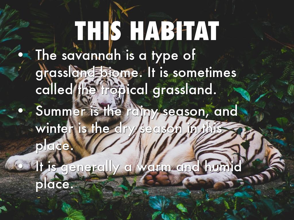 The savannah is a type of grassland biome. It is sometimes called the tropical grassland.