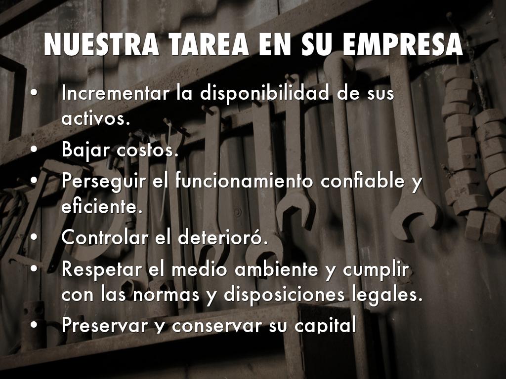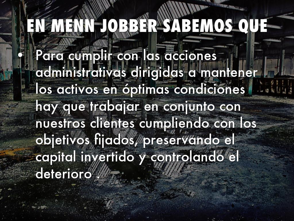 Para cumplir con las acciones administrativas dirigidas a mantener los activos en óptimas condiciones hay que trabajar en conjunto con nuestros clientes cumpliendo con los objetivos fijados, preservando el capital invertido y controlando el deterioro .
