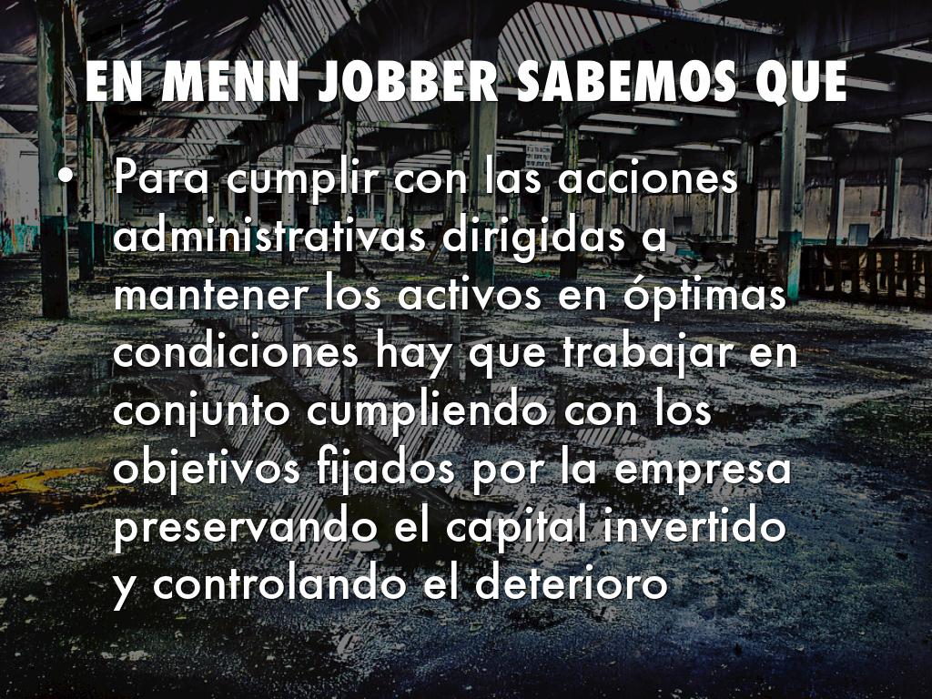 Para cumplir con las acciones administrativas dirigidas a mantener los activos en óptimas condiciones hay que trabajar en conjunto cumpliendo con los objetivos fijados por la empresa preservando el capital invertido y controlando el deterioro
