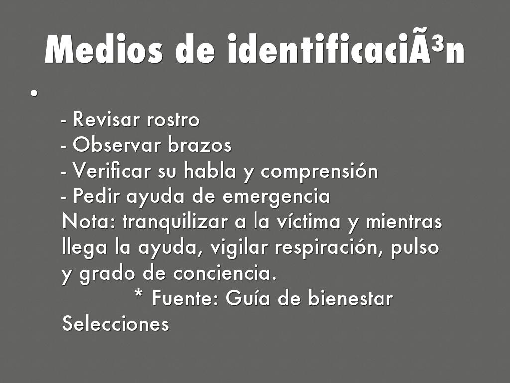 Nota: tranquilizar a la vÃÂctima y mientras llega la ayuda, vigilar respiración, pulso y grado de conciencia.