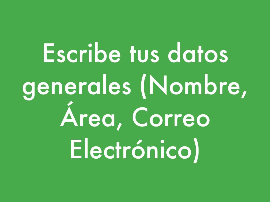 Escribe tus datos generales (Nombre, Área, Correo Electrónico)