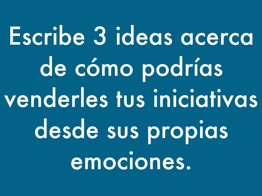 Escribe 3 ideas acerca de cómo podrías venderles tus iniciativas desde sus propias emociones.