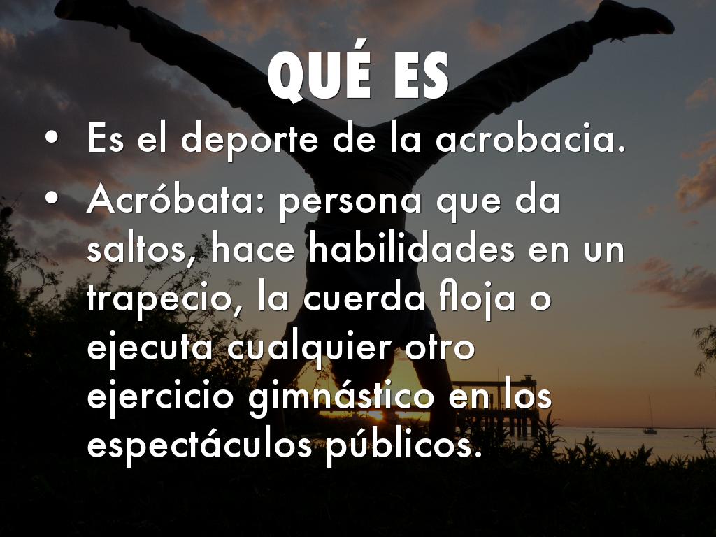 Acróbata: persona que da saltos, hace habilidades en un trapecio, la cuerda floja o ejecuta cualquier otro ejercicio gimnástico en los espectáculos públicos.