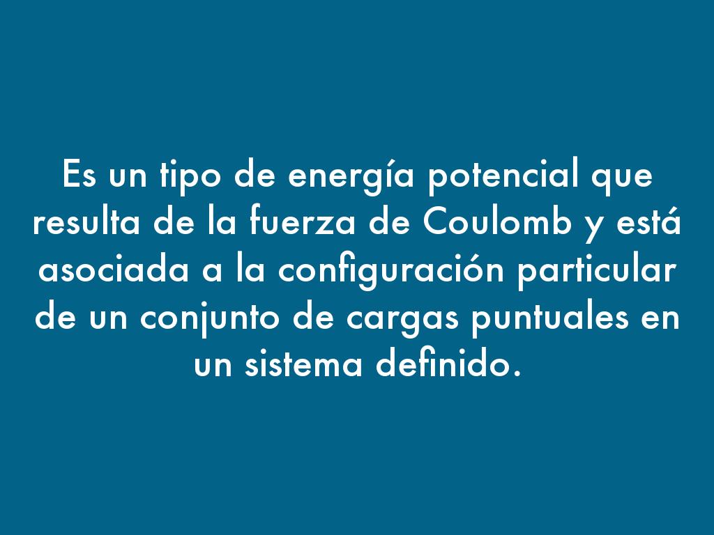 Es un tipo de energía potencial que resulta de la fuerza de Coulomb y está asociada a la configuración particular de un conjunto de cargas puntuales en un sistema definido.