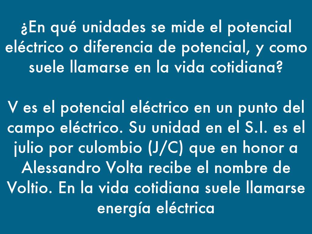 ¿En qué unidades se mide el potencial eléctrico o diferencia de potencial, y como suele llamarse en la vida cotidiana?