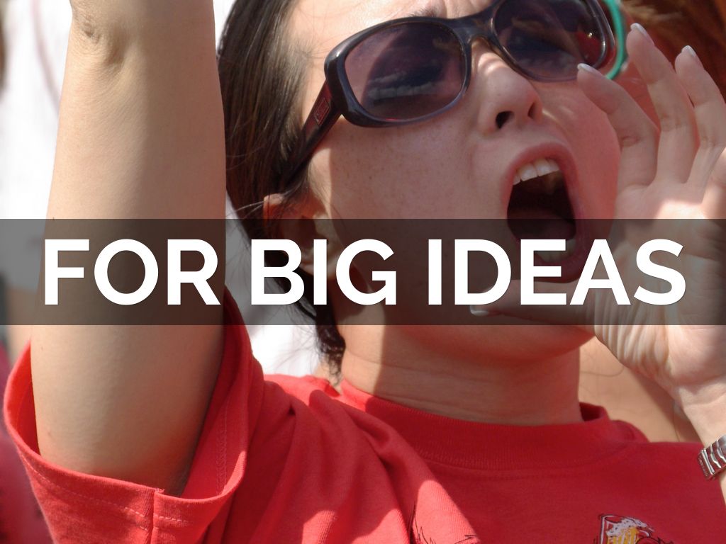 Humans can only visually focus on one thing at time. It's tempting to present a big idea with a big loud background slide. In fact the opposite can be much more effective.
