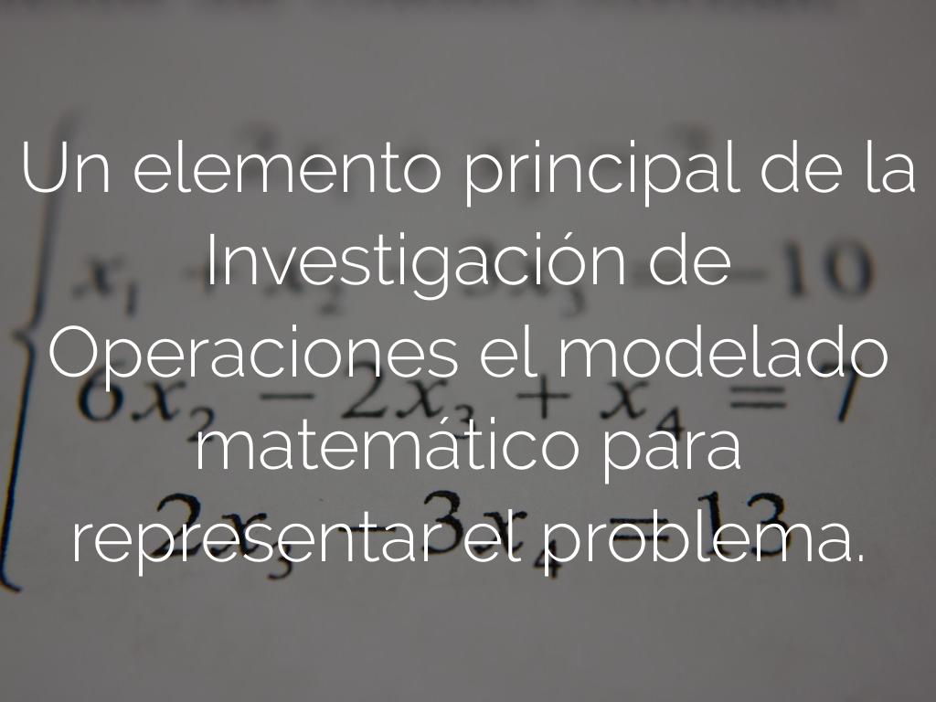 Un elemento principal de la Investigación de Operaciones el modelado matemático para representar el problema.