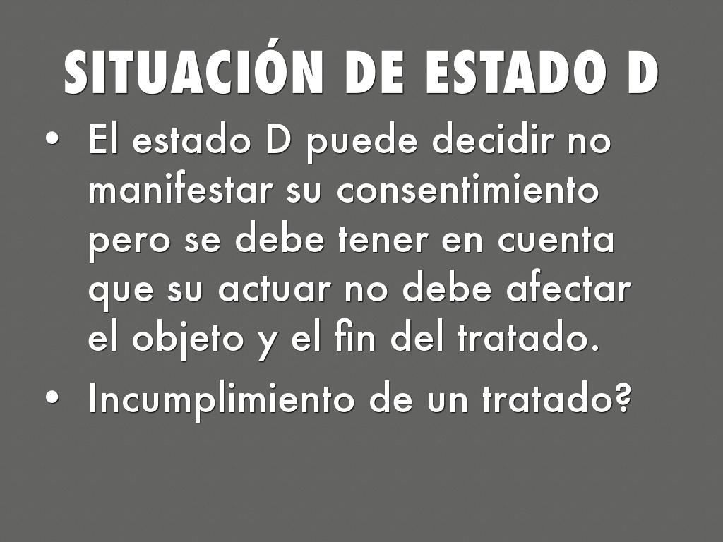 El estado D puede decidir no manifestar su consentimiento pero se debe tener en cuenta que su actuar no debe afectar el objeto y el fin del tratado.