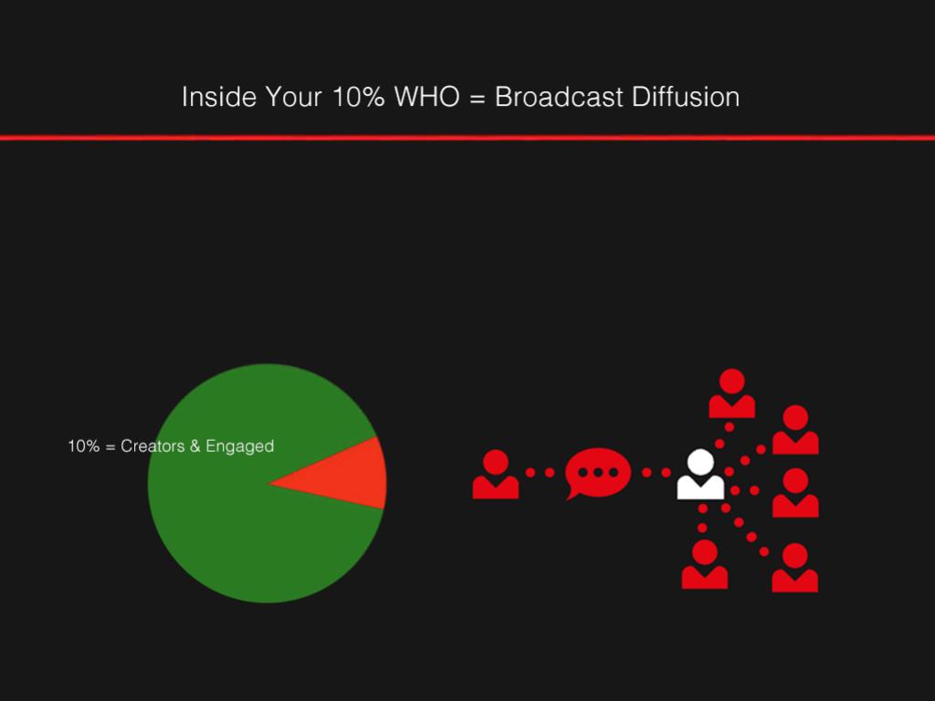 Finding, empowering, and rewarding your website's 10% is any marketers CSF (Critical Success Factor). But such knowledge is easy to come by and common for most digital marketing teams. Learning who, within your tribe of supporters, has "broadcast diffusion" potential separates good from great in e-commerce marketing.