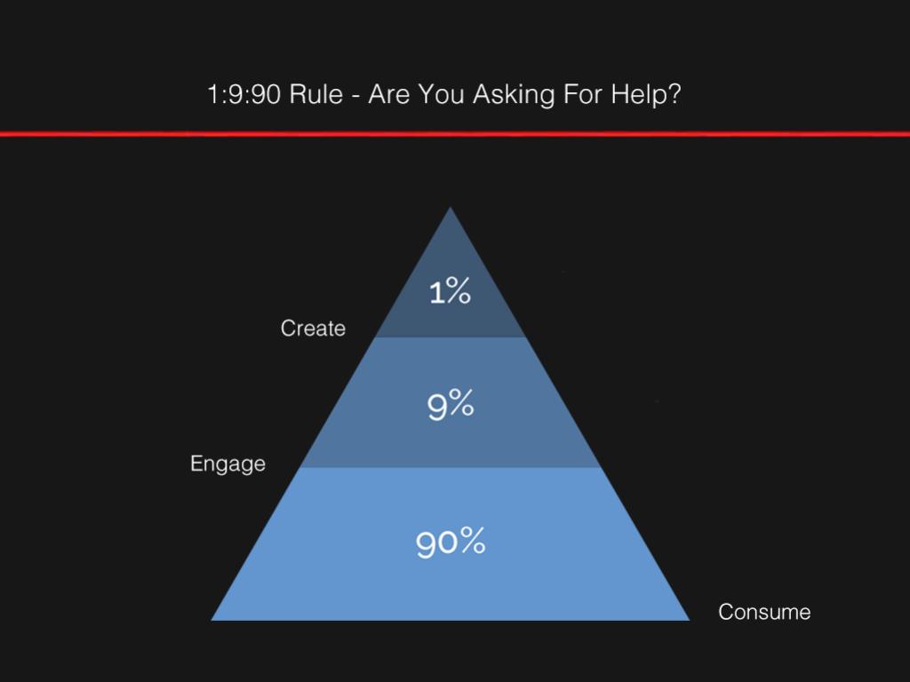 Right after those critical Ambassadors stands a group willing to help especially when content comes from their fellow visitors - the 1%ers. 9% will help with shares, likes and, if you're lucky, links.