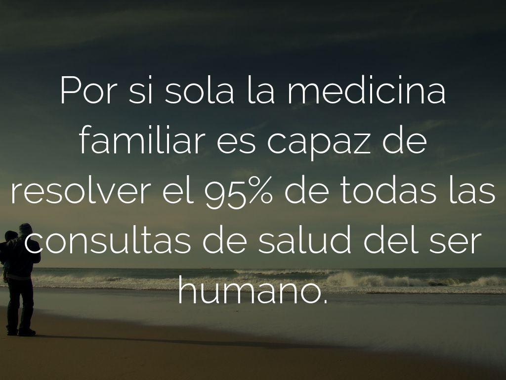 Por si sola la medicina familiar es capaz de resolver el 95% de todas las consultas de salud del ser humano.