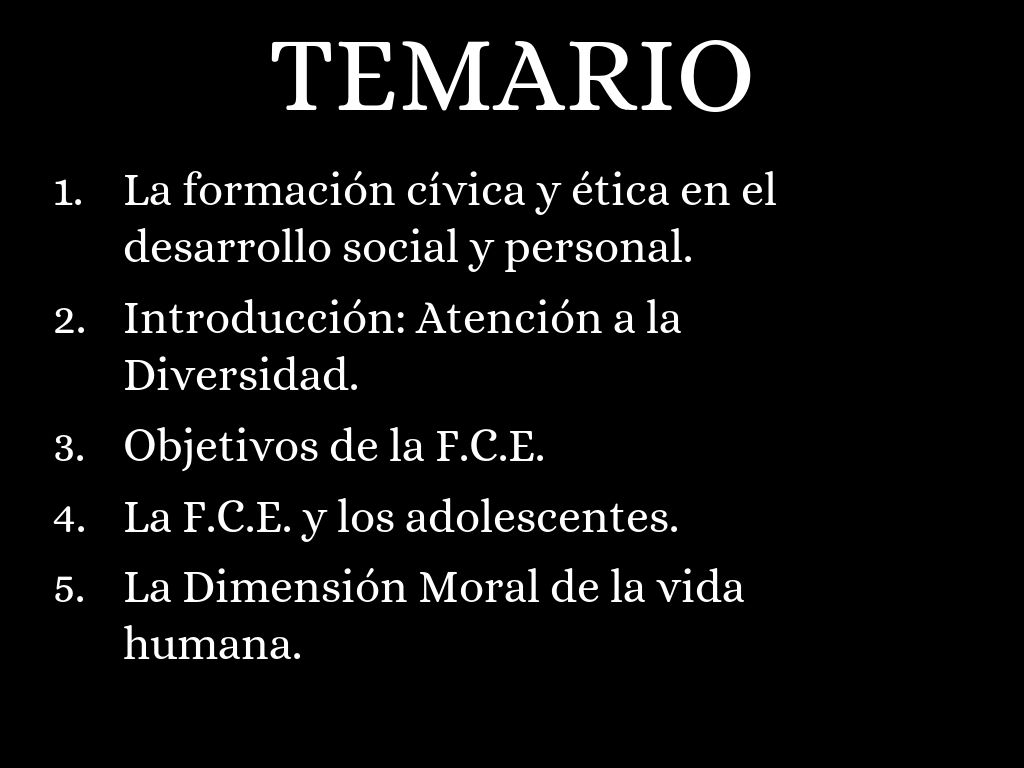 • Objetivos de la F.C.E. La formación cívica y ética en el desarrollo social y personal.