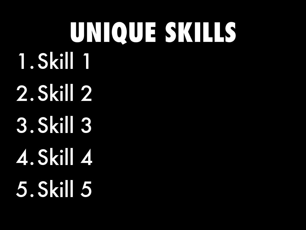 What are 3-5 unique skills that you bring to the table? You can highlight them here. (Bonus tip: If you're on LinkedIn, review what your contacts have endorsed you for to get ideas.)