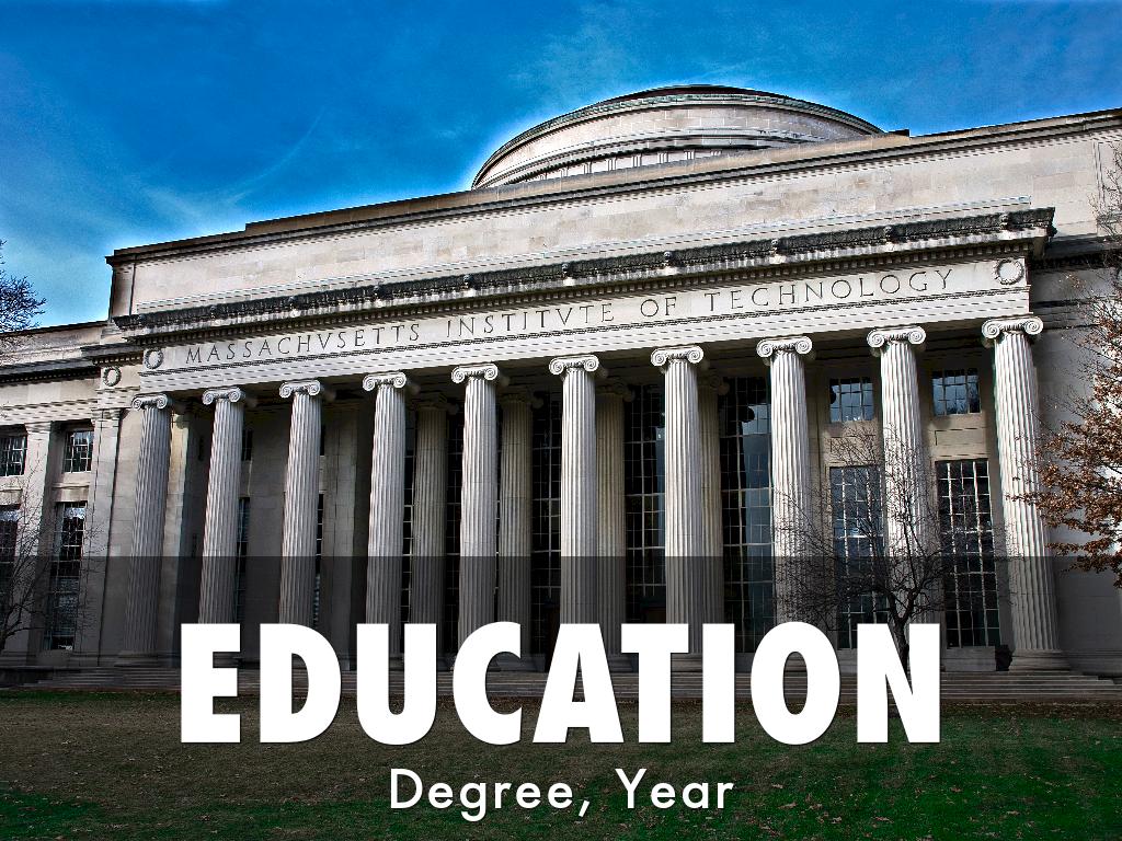 Again, you can choose how much detail you want to include (year is optional), or add multiple slides to highlight different degrees, but be sure to call out your academic achievements.
