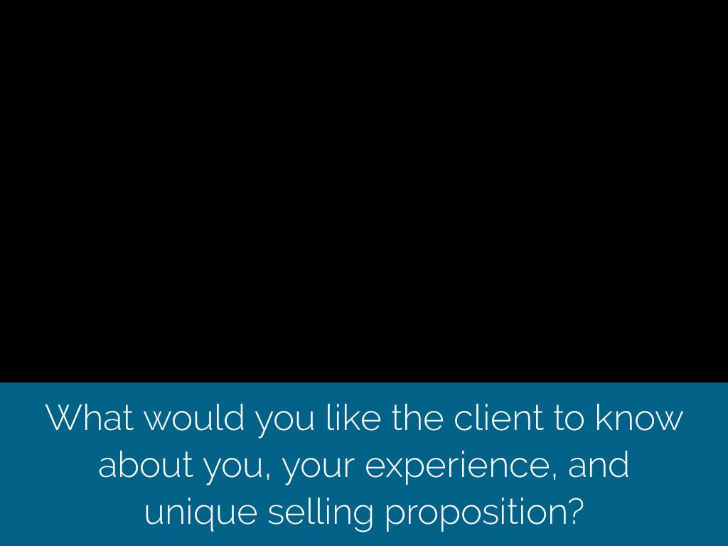 What would you like the client to know about you, your experience, and unique selling proposition?