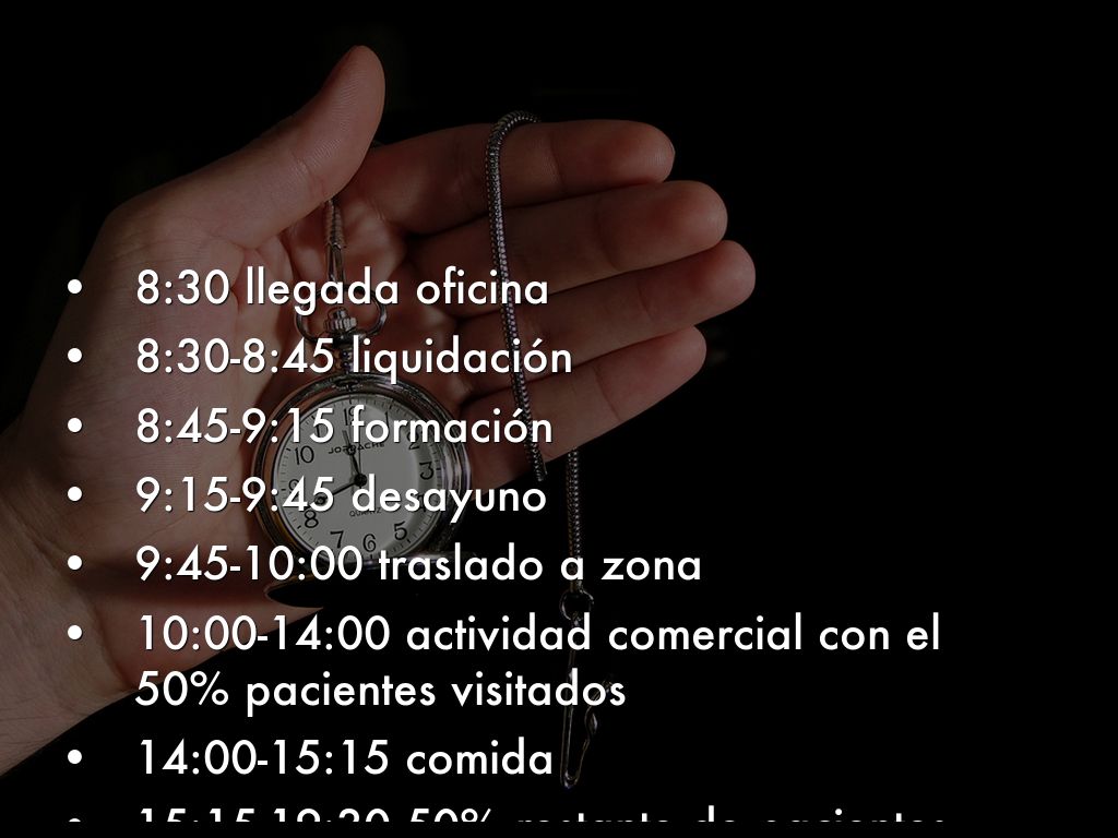 - 10:00-14:00 actividad comercial con el 50% pacientes visitados