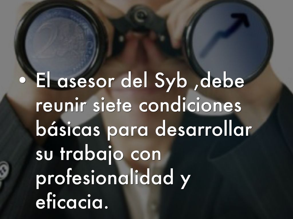 - El asesor del Syb ,debe reunir siete condiciones básicas para desarrollar su trabajo con profesionalidad y eficacia.