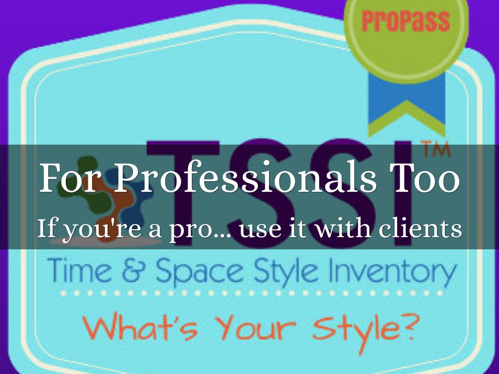 The Time & Space Style Inventory™ (TSSI™) helps you understand what is natural to your style personality preference and how you assign value and prioritize items.