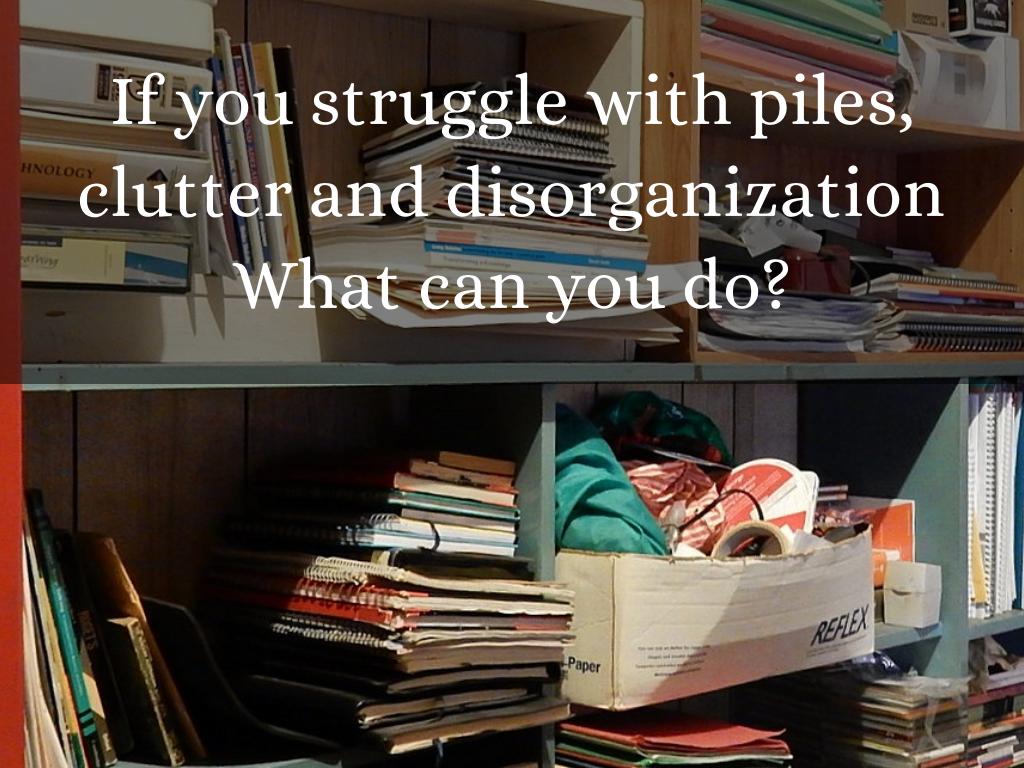 They believe that ‘out of sight is out of mind’ and see their piles as evidence of hard work. They fear that putting things away may cause them to forget to take action. They like to leave things out where (hopefully) they can put their hands on them again quickly. When too many things are left out, however, it can become difficult to find what they’re looking for.