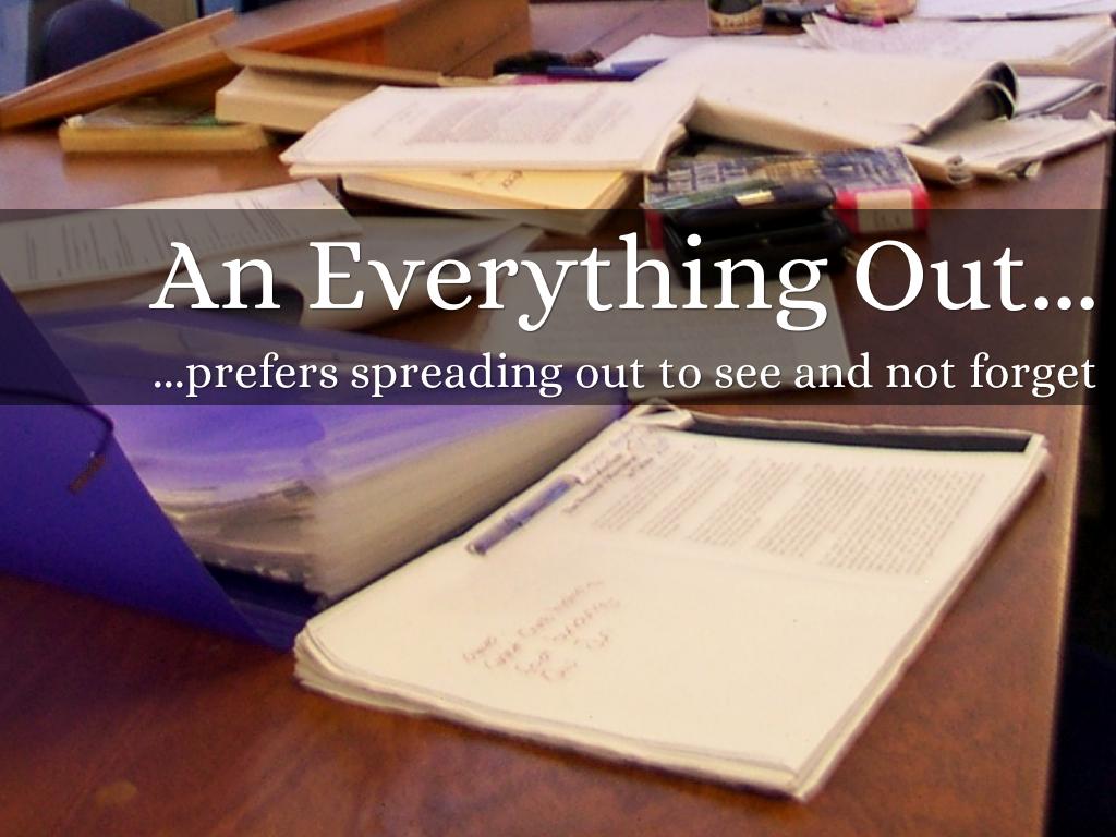 Everything Out personalities often refer to themselves as 'pilers'... leaving piles in their path. If you do this often, here are some quick and easy tips to help yourself!